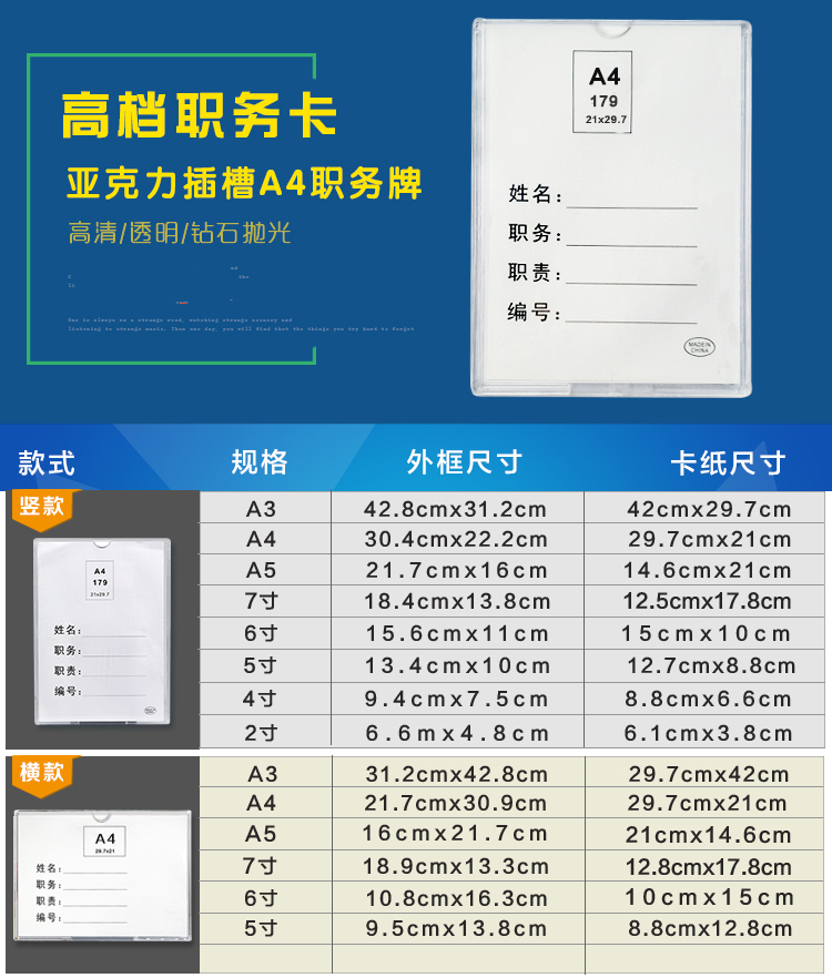 One-piece job card acrylic photo frame a4 display frame 5 inch photo frame insert box transparent organic plastic 6 7 card slot