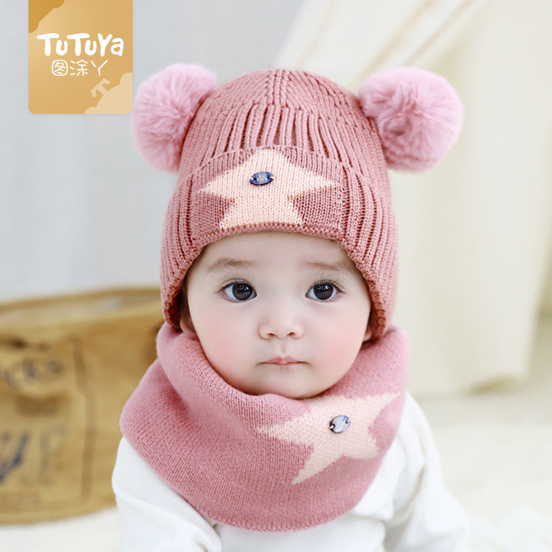 Tutu Girl Baby Hat Autumn Winter Children Knitted ear wool hood male and female Child suit Han version Mao Line hat Winter
