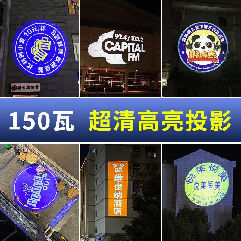 150W ultra-clear high power advertising logo projection lamp door shop door wall sign rotating pattern with text HD remote control rotating commercial projection spotlight customization