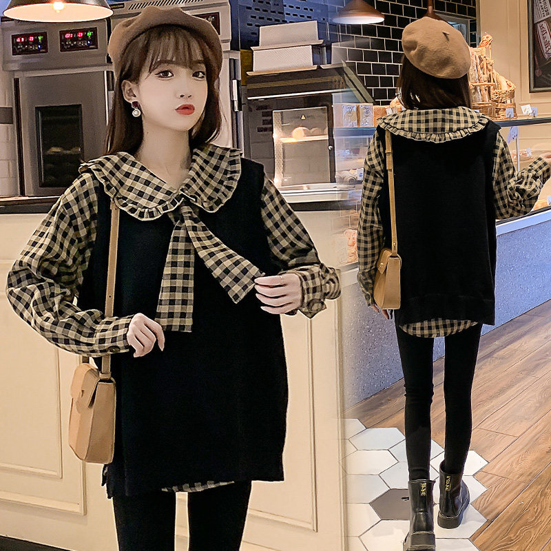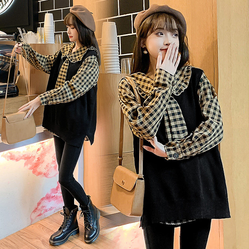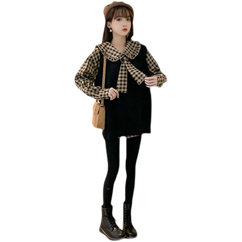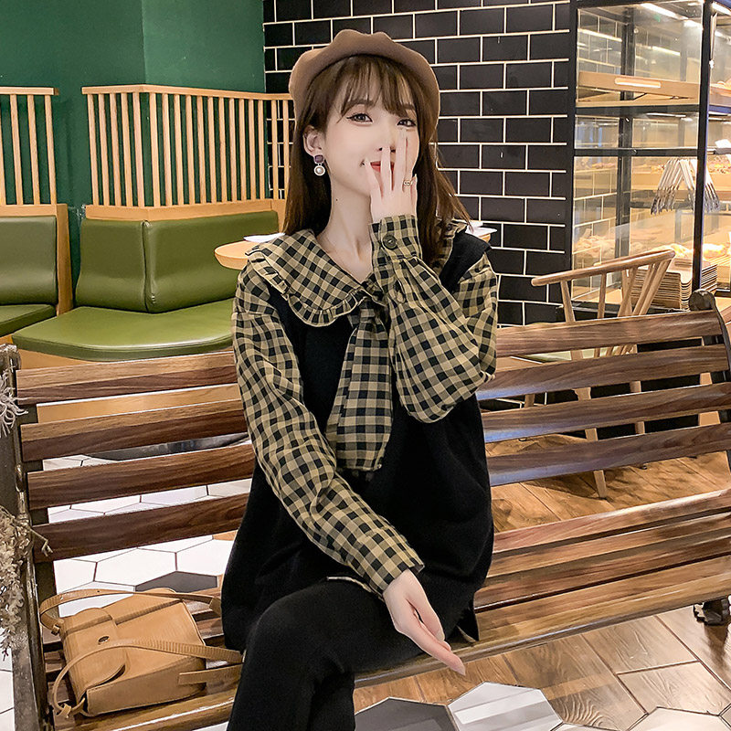 Autumn dress new Korean version of Pregnancy Woman Dress Loose two style foreign dress Dress Shirt Mesh Red horse A suit