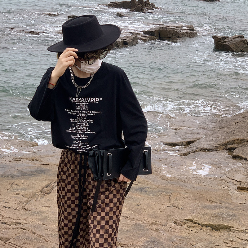 Kaka Don't eat a hitchhiking, a contest letter printed long sleeve T-shirt with a slimmer blouse