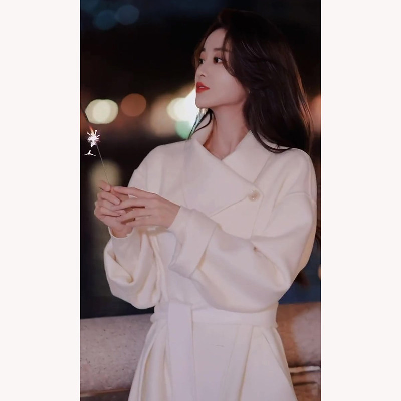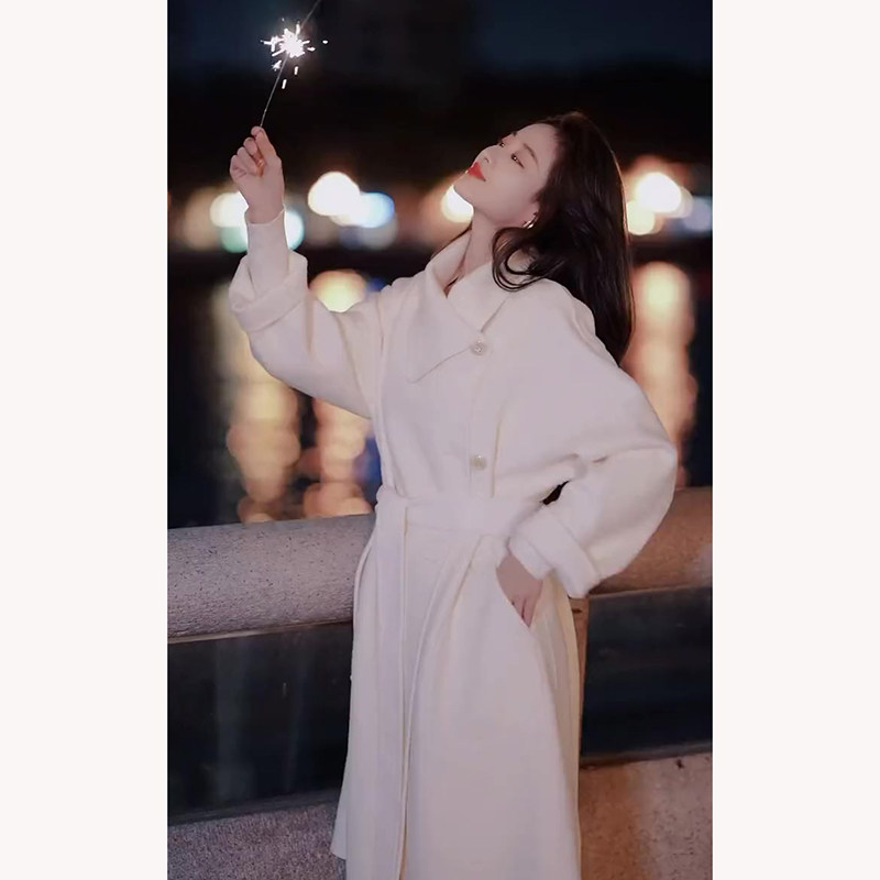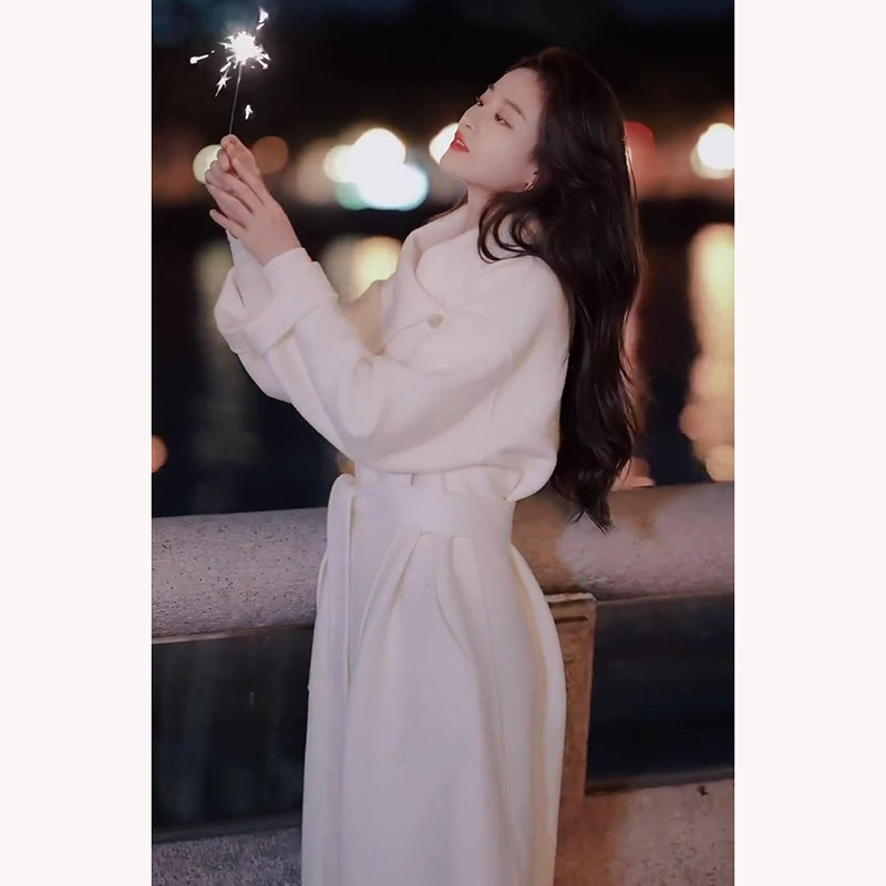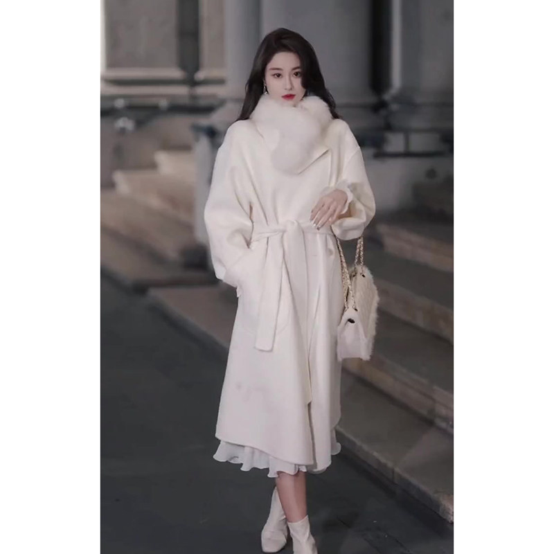 Famous Yuan High-Sense Winter Fashion Non-Cashmere Double-sided Twin Costume Goddess White Medium and Long-Edition Cover Woman Winter