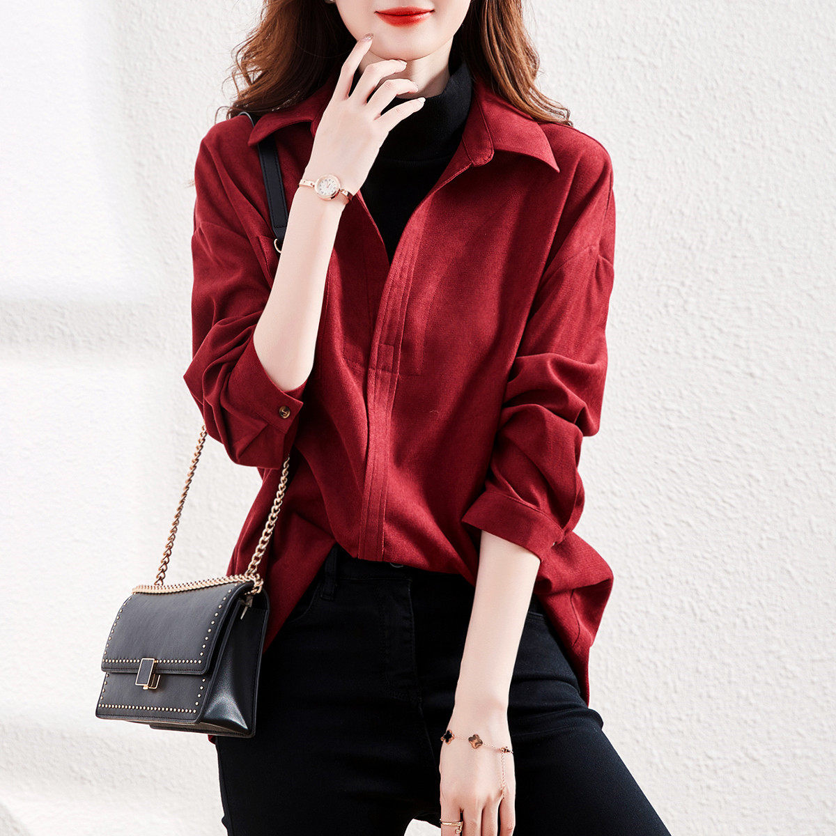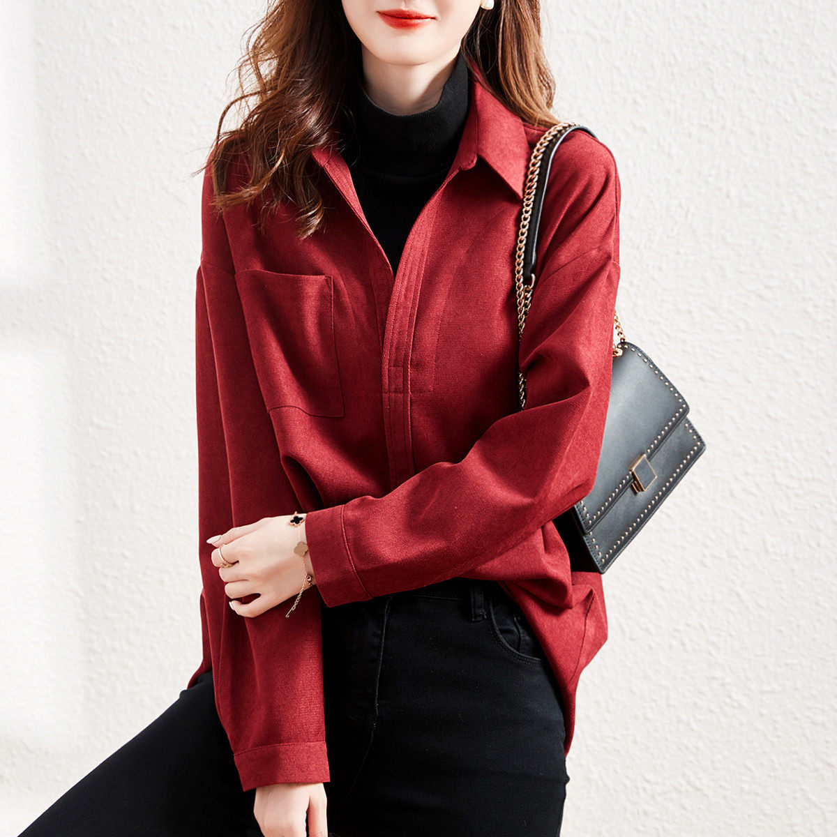 Foreign Trade Single Italian first-line big tail cut female clothing export half high-shoulder long sleeve loose shirt