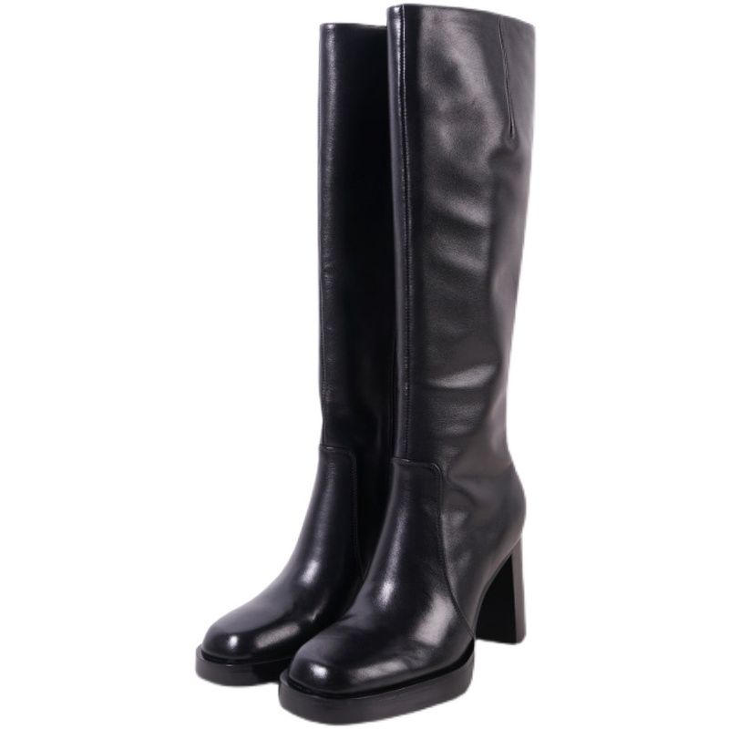 Mao cat GS independent style exclusive retro first layer calfskin boots women's new round head thick high-heeled knee boots