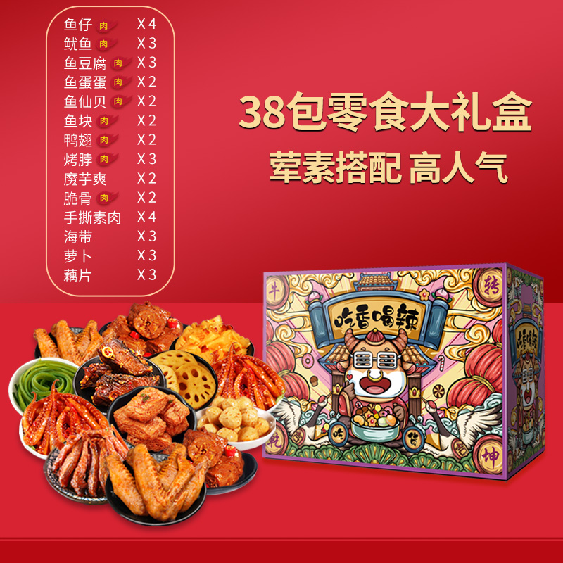 Eat Spicy Gift Box 38 Pack Snack Gift Pack*1 Box Eat Spicy Drink Spicy Gift Box 38 Pack Snack Gift Pack*2 Box Meat and Vegetarian Mix Gift Bag 15 Pack Meat and Vegetarian Mix Gift Bag 30 Pack
