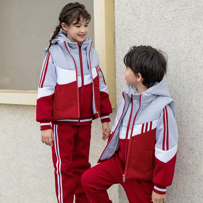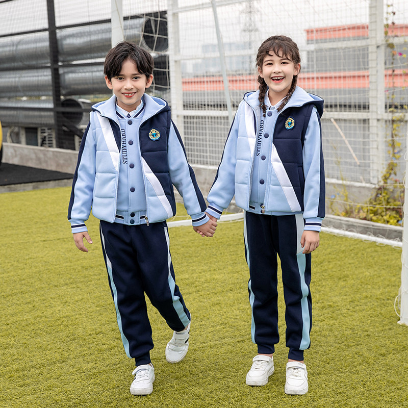 Elementary school uniforms autumn and winter thickened cotton suits children's class clothes sweater three-piece set kindergarten garden clothes vest