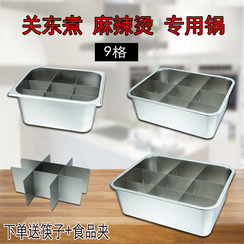 Special Thick Stainless Steel Guan East Cooking Nine-Palace Lattice Boiler Commercial Pendulum stall Spicy Scalding Pan 12 Separator Pan-Pan Fried Pan