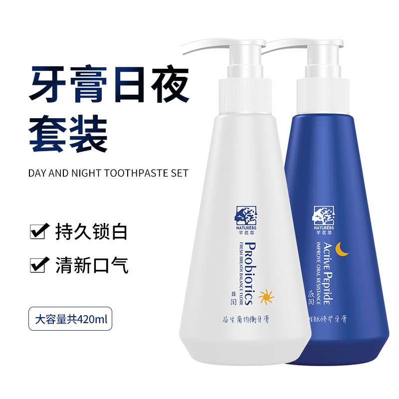 Qianmingcao active peptide toothpaste probiotics whitening, yellowing, smoke stains, teeth, whitening, day and night, tartar removal combination set