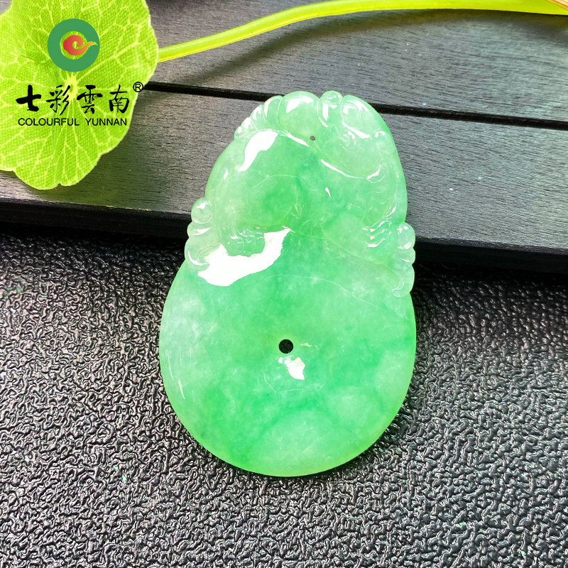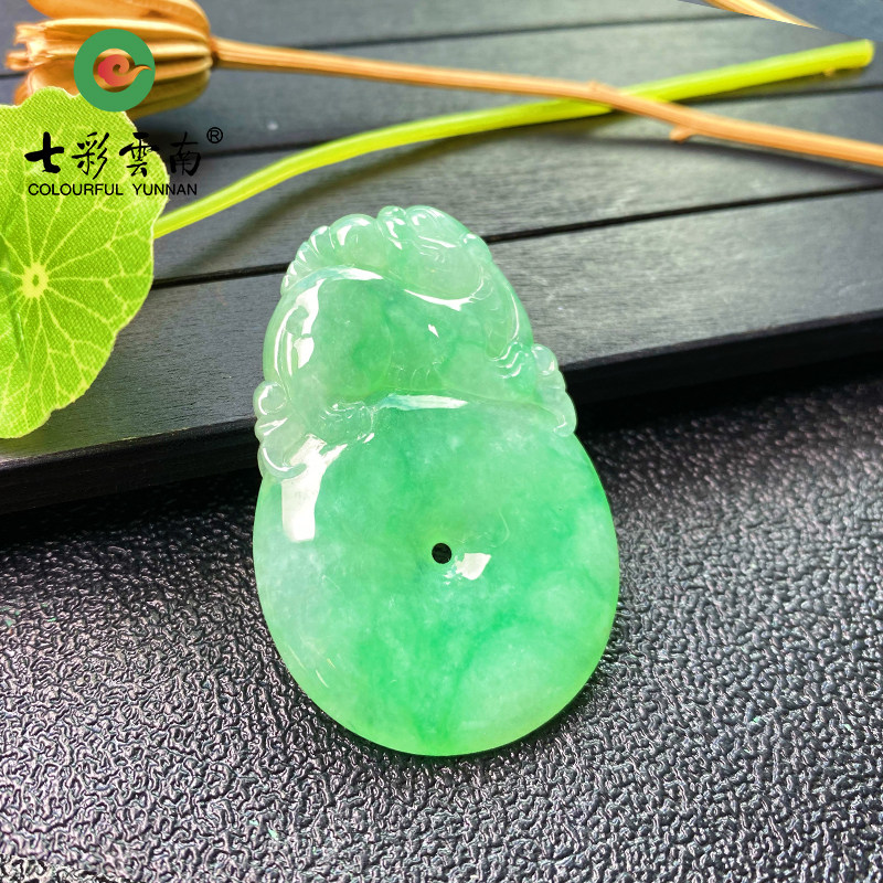 Color Yunnan Myanmar A cargo natural emerald with certificate ice glutinous colour filled pine hanging piece natural emerald hanging