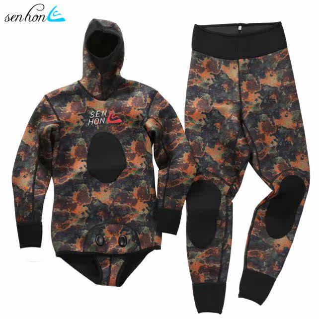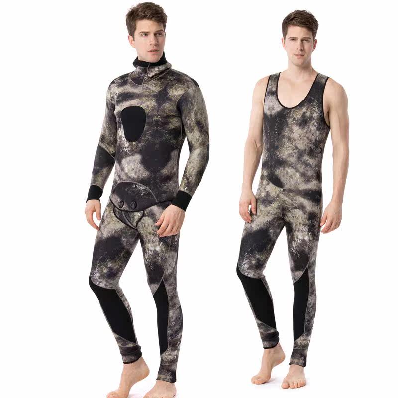 Clothes thickened diving suit 3-5MM7mm men's and women's fishing clothing two-piece hooded cold-proof heating pants