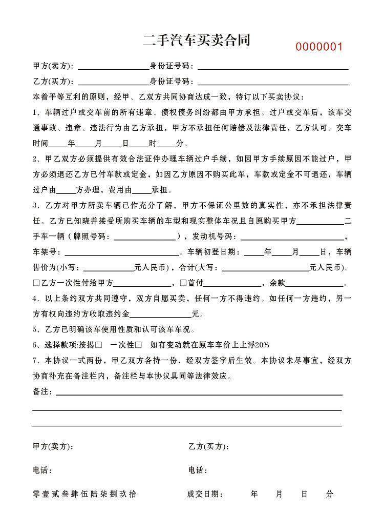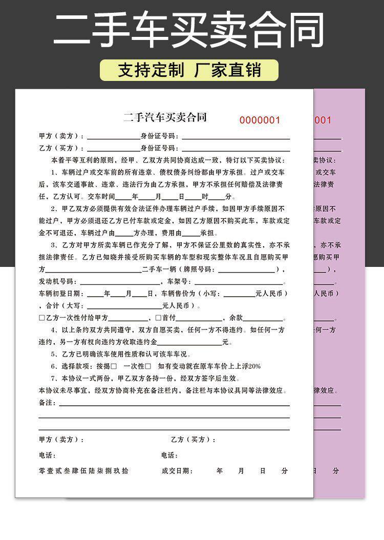 Secondhand Car Sale Contract Custom Car Sale Transaction General Agreement Car vehicle transfer 2nd link