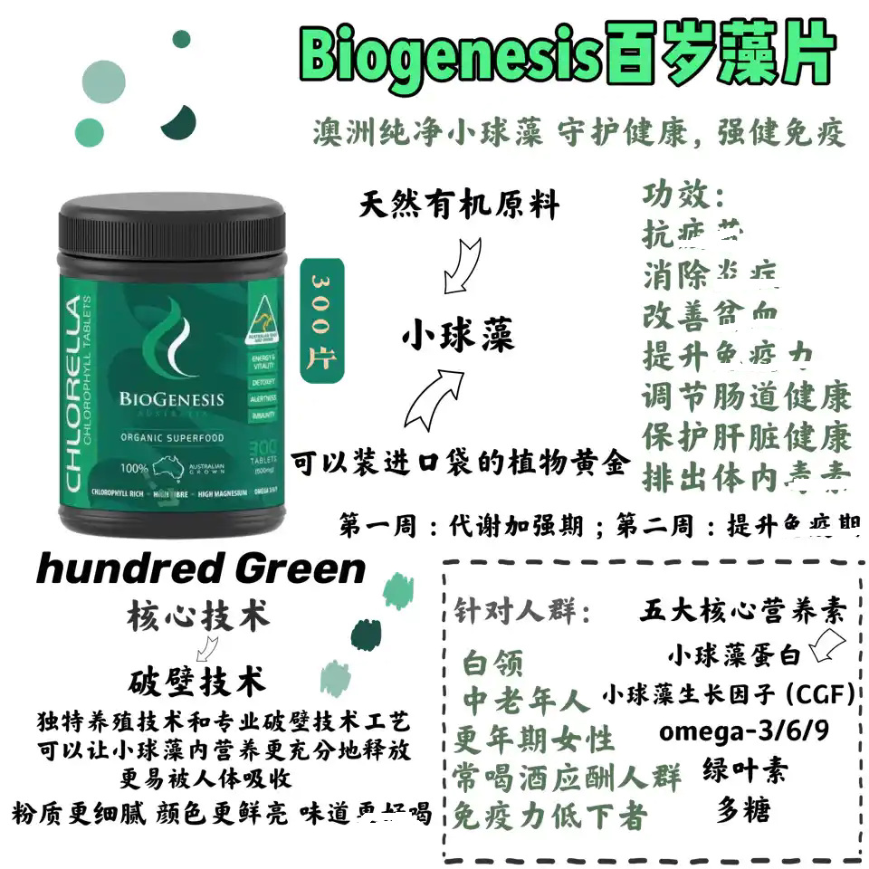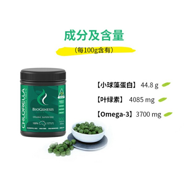 Australian BioGenesis 100 Kenseria Algae Smallball Algae Tablets 300 Tablets of Broken Protein Nucleogreen Algae