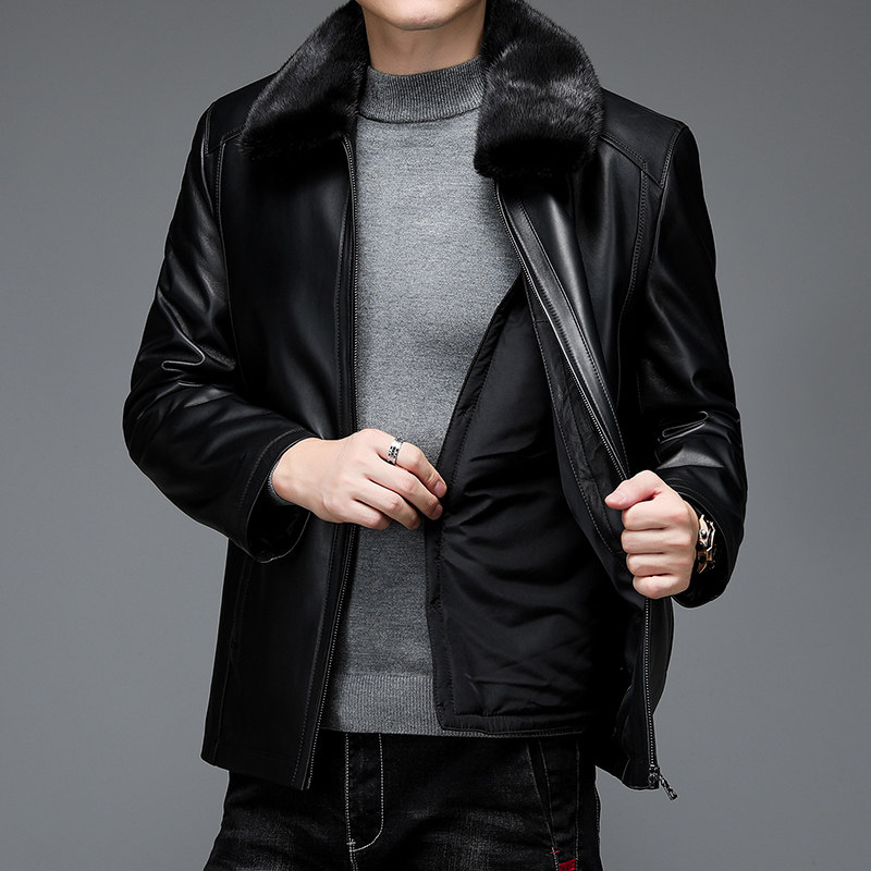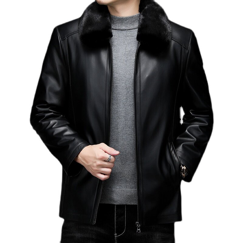 Ordos Produce Winter Thickened water mink liner jacket Male middle-aged business Warm Sheep Leather leather jacket Kerch