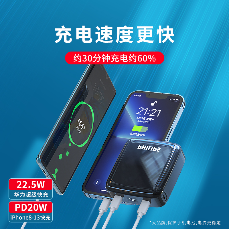 Philips Mobile Charging twenty thousand MAh Megacity Official Flagship Store High-end New Small Portable Suitable for Huawei Fast-charging Apple iphone12 Dedicated 20000 Action Power Supply