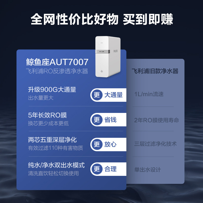 (Philips 797) Water Purifier Reverse Osmosis Home Filter Straight Drinking 900G Double Water Water Purifier AUT7007