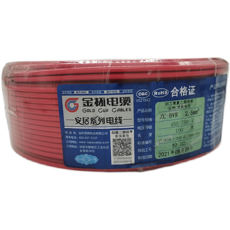 Golden Cup Electric Copper Core Multi - Share Soft Line ZC-BVR1 5 2 5 4 square flame retardant wire 6 single - core national standard cable