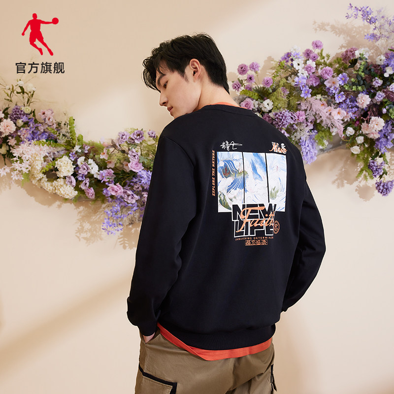 Jordan Wei pants thick cotton T man 2022 spring new loose casual round collar men printed round collar long sleeve blouse