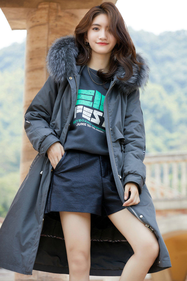 Shopping malls with the same down jacket women's winter long version 2022 new 90 white duck down high-end explosion style pie to overcome detachable