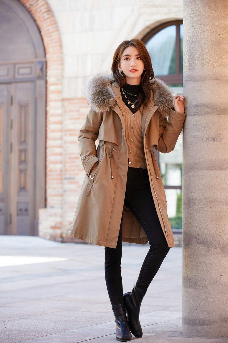 (Counter Delivery) Parker Down Jacket Women's Winter Mid-Length Edition 2021 New Fashion White Duck Down Thickened Jacket