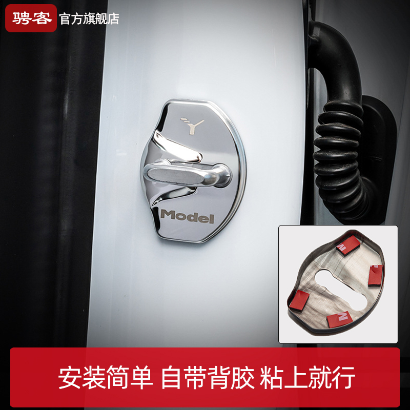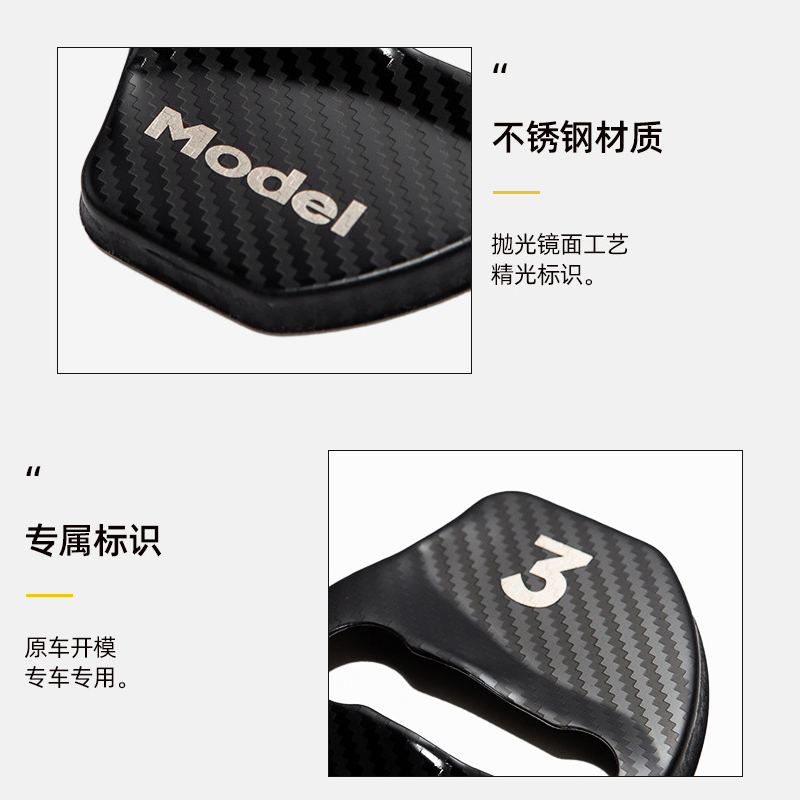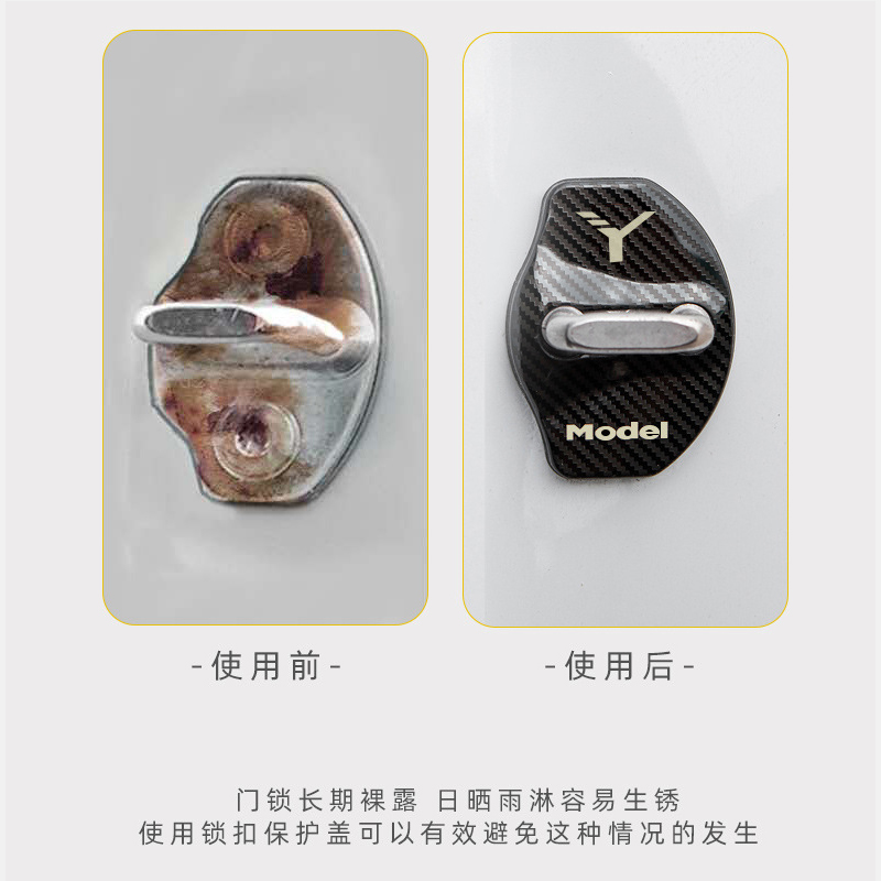 Model Y stainless steel door lock protection cover-black Model Y stainless steel door lock protection cover-silver color Model Y stainless steel door lock protection cover-carbon fiber Mo