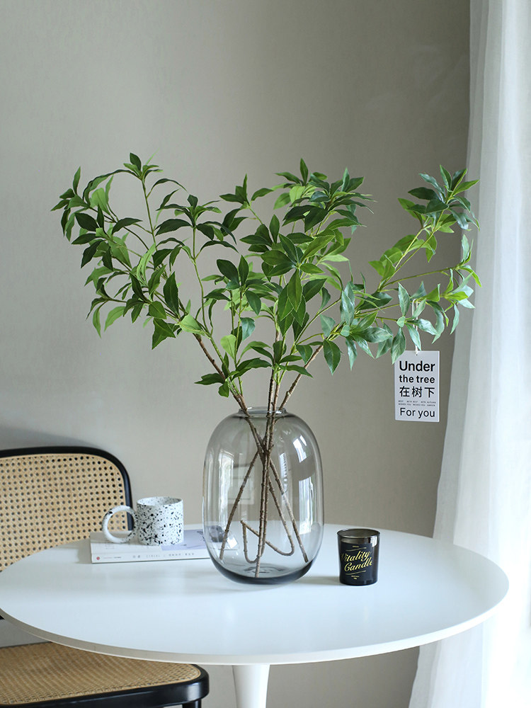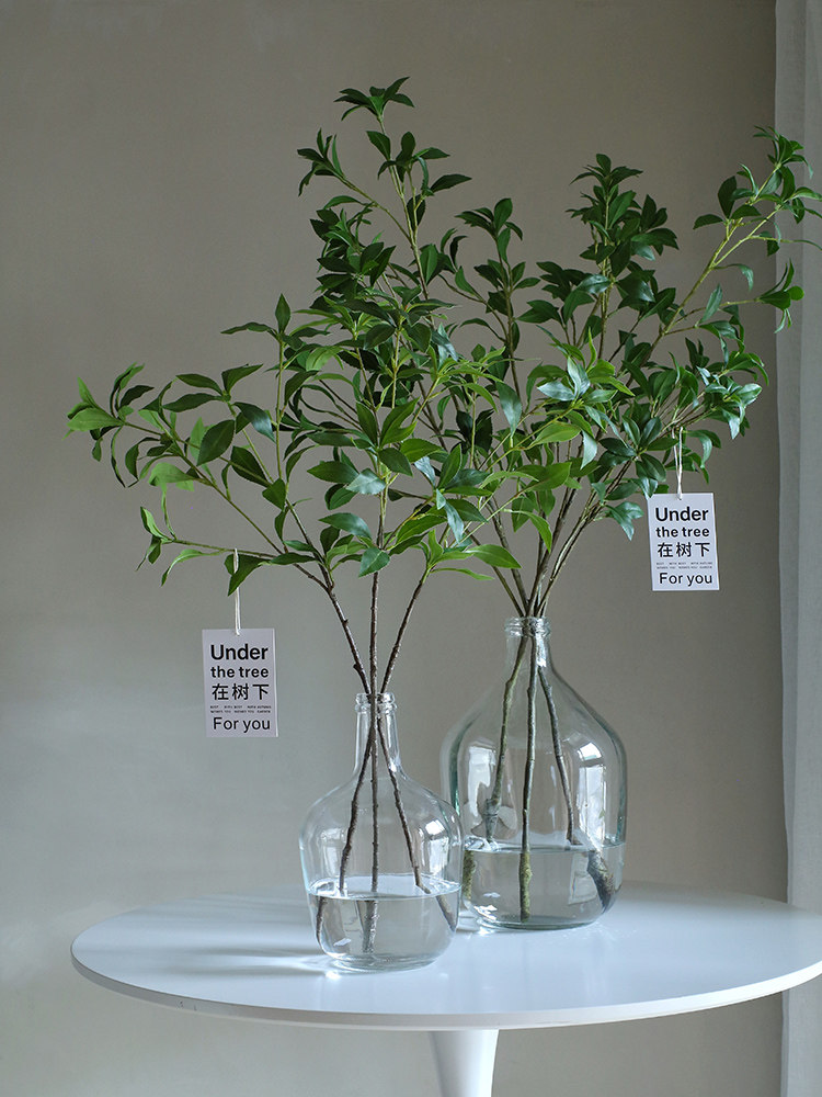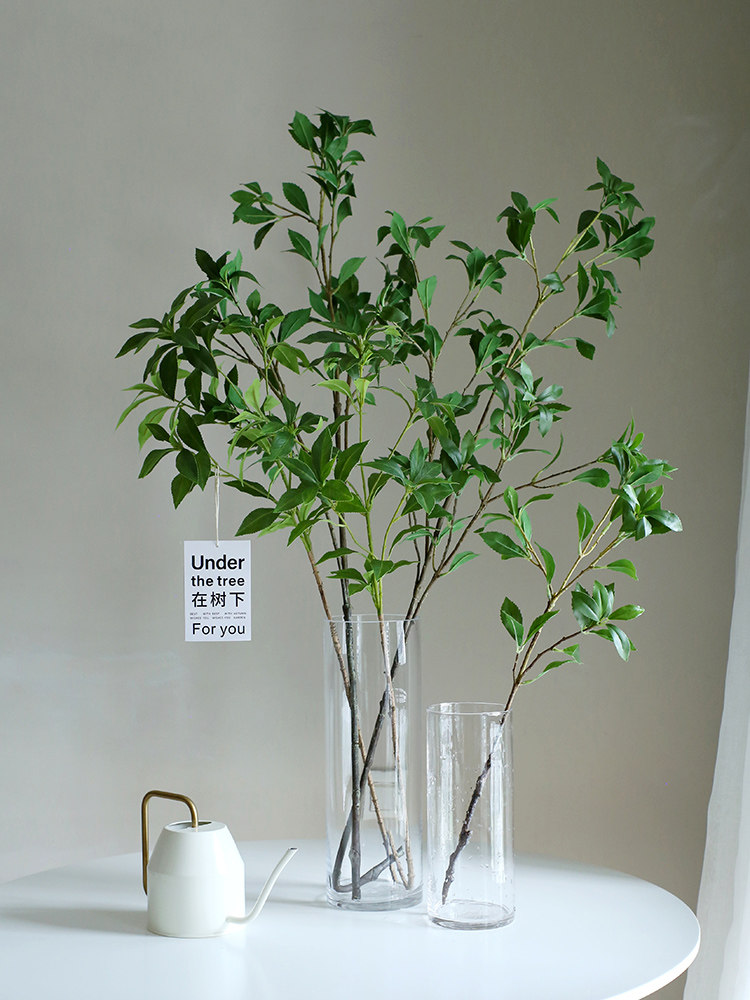 High simulation Japanese horse drunken wood hanging clock fake green plant fake tree branch green leaf branch new home gift home living room decoration