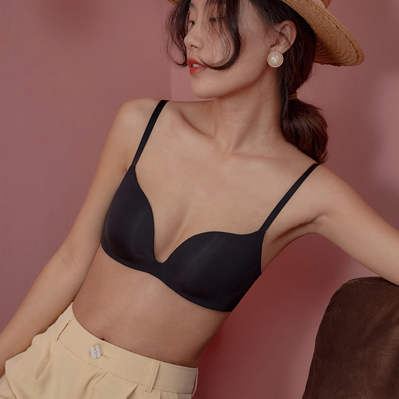 No-marks-one-piece underwear female large breasts with small comfort without steel ring bra small breasts gathered to collect auxiliary milk and anti-sagging black