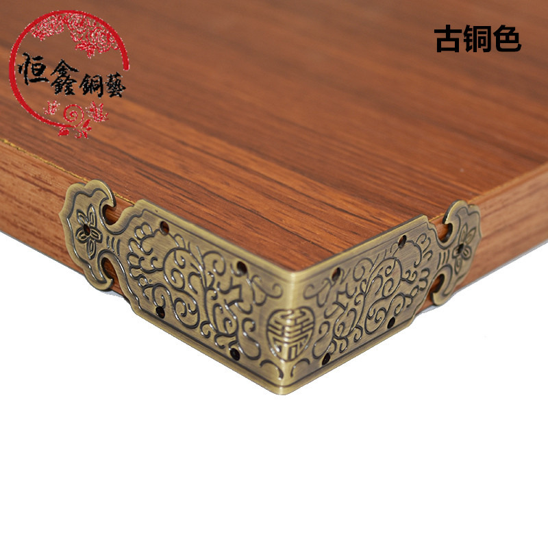 Pure copper thickened Zhangmu Case 90 degrees Right Angle Chinese Wood Case Decorative Corners Copper Wrap Corner Hardware Furniture Furniture Accessories