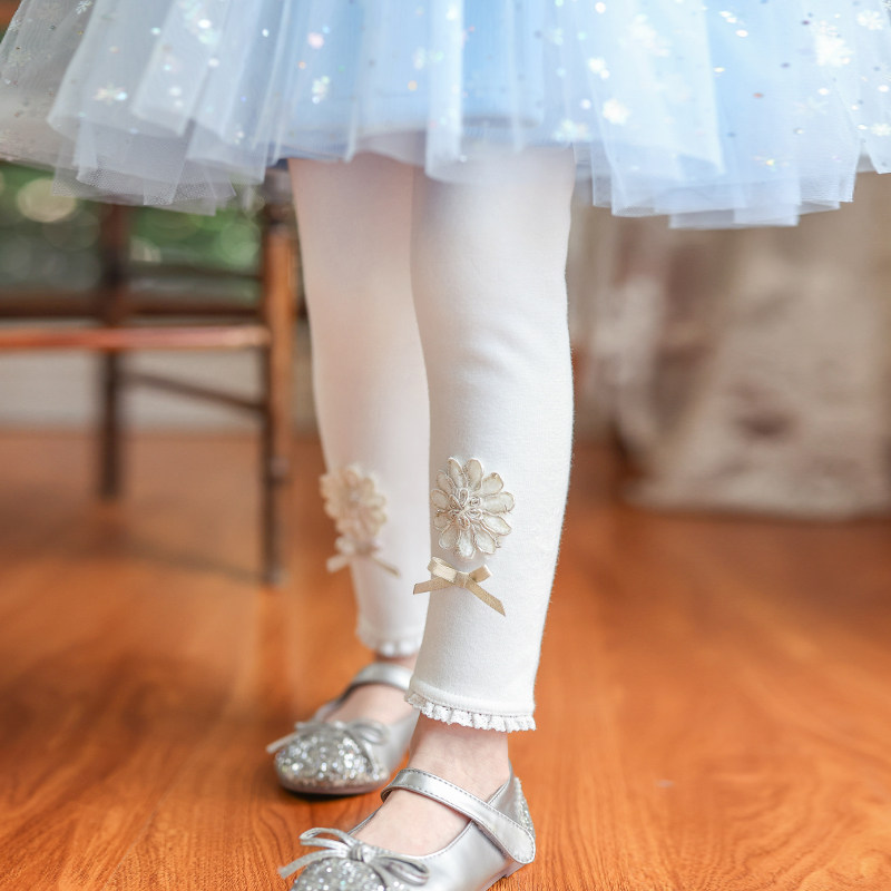 Boat rat girl gush with inner lap pants autumn and winter outside wearing foreign pie integrated thin suede white high waist flowers baby pants