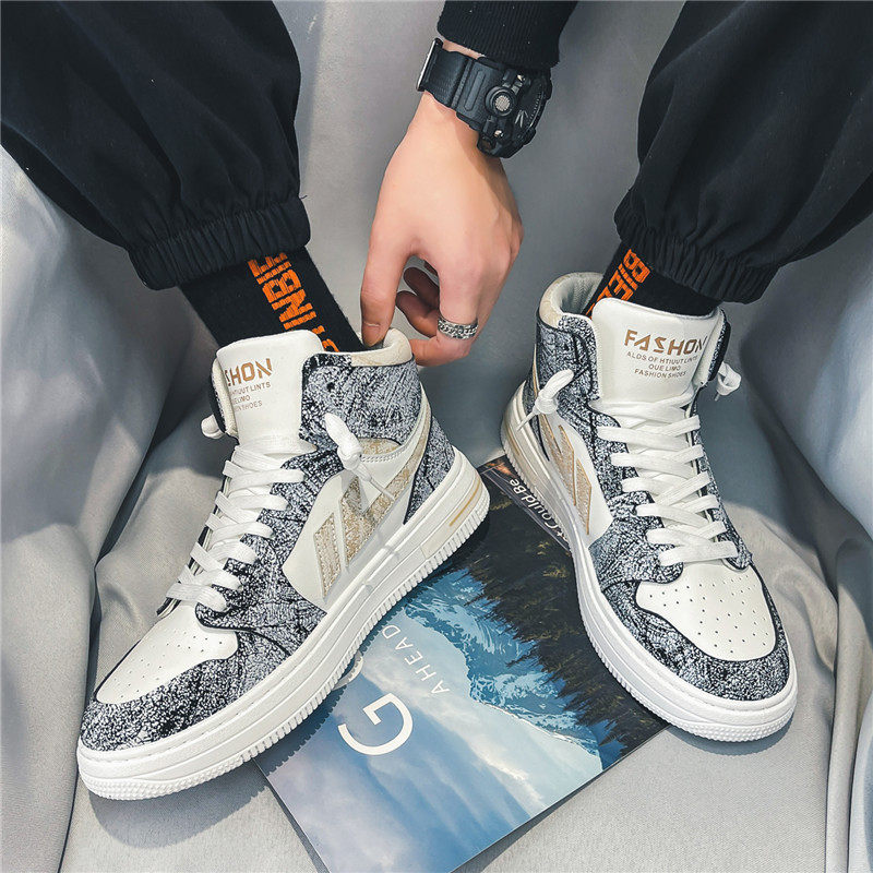 aj men's shoes high cylinder summer basketball sports middle cylinder small whiteboard shoes teen tide shoes Korean version Trend Air Force One