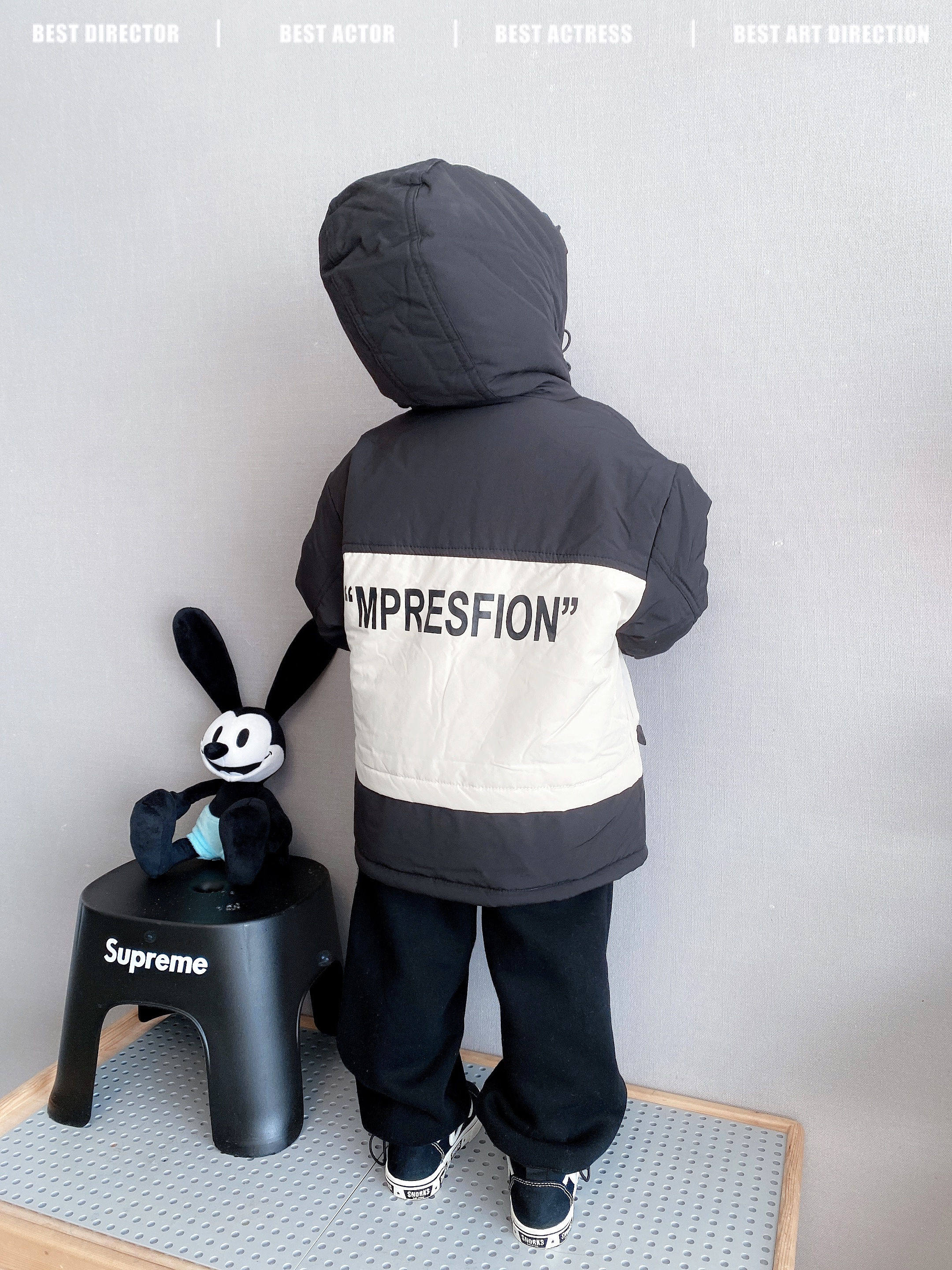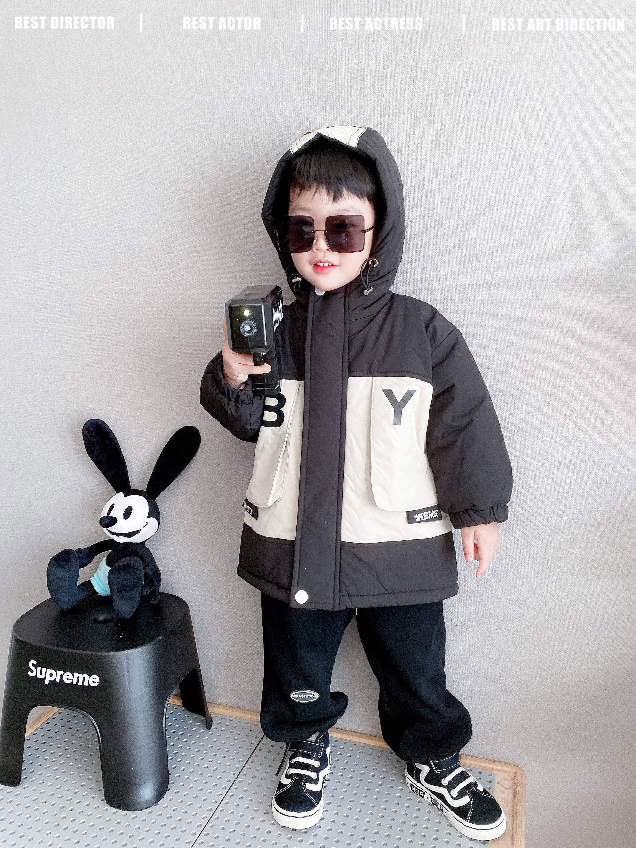(Color-blocking cotton clothes) Children's autumn and winter warm hooded mid-length cotton jacket