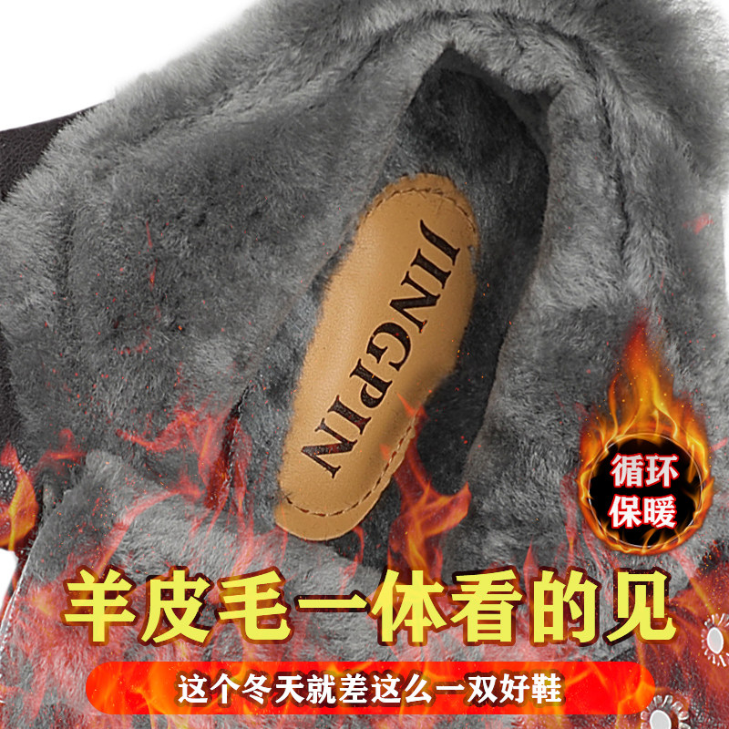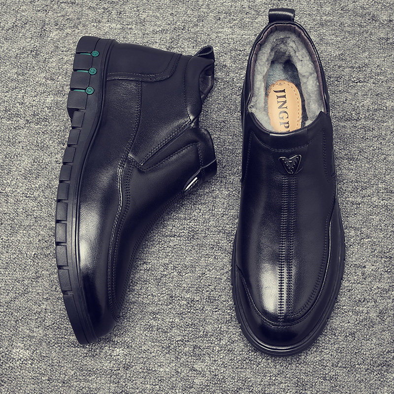 Leather shoes men's winter gush cotton shoes men genuine leather warm and thickened northeast high cylinder fur integrated short boots casual shoes