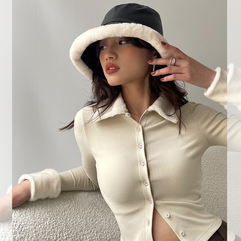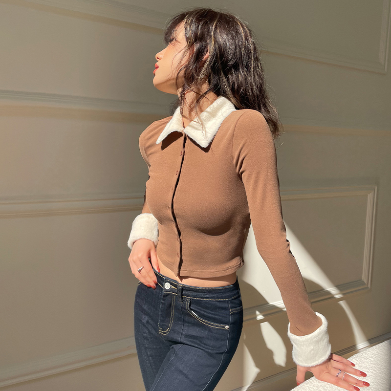 LEIYU Grinding Knitted Undershirt Woman 2021 Winter New Short Tight Retro Splicing Blouse and American Ins