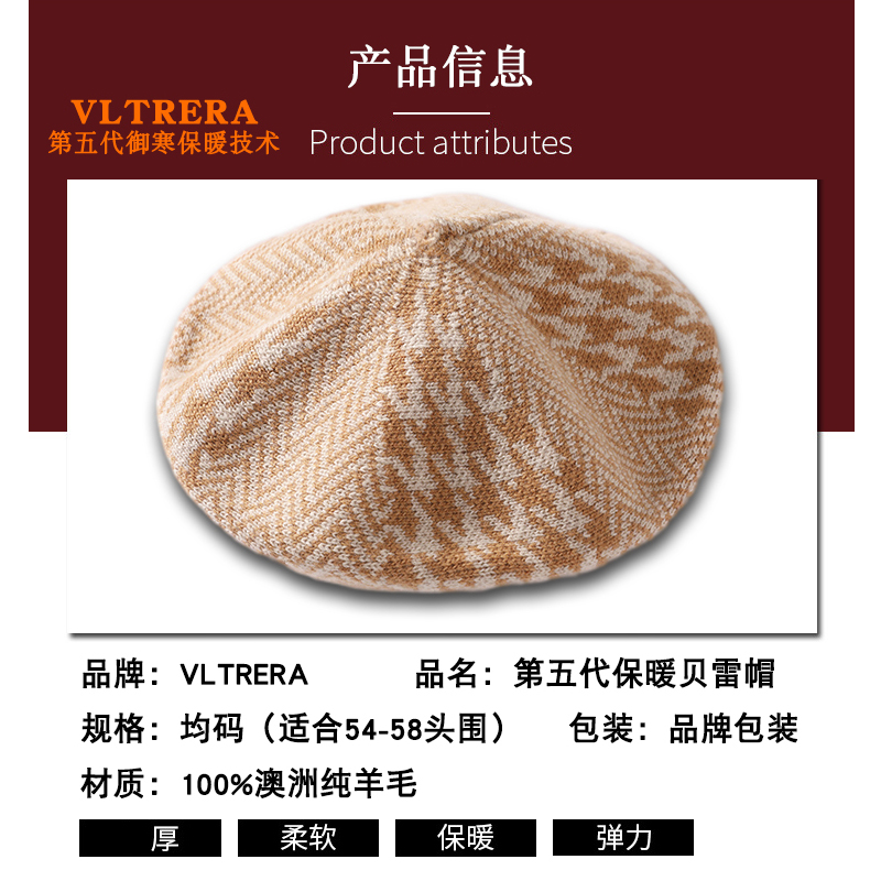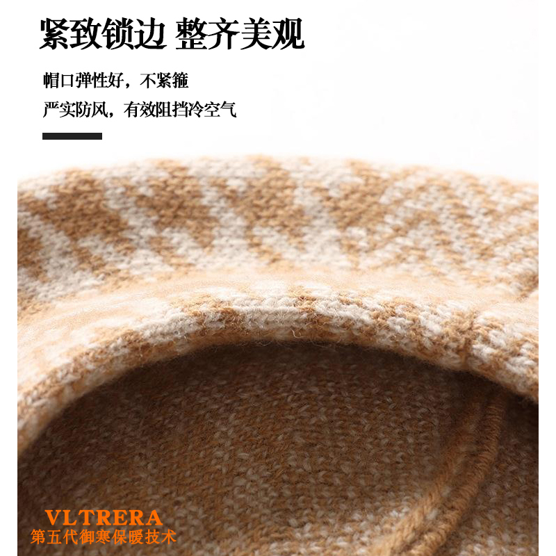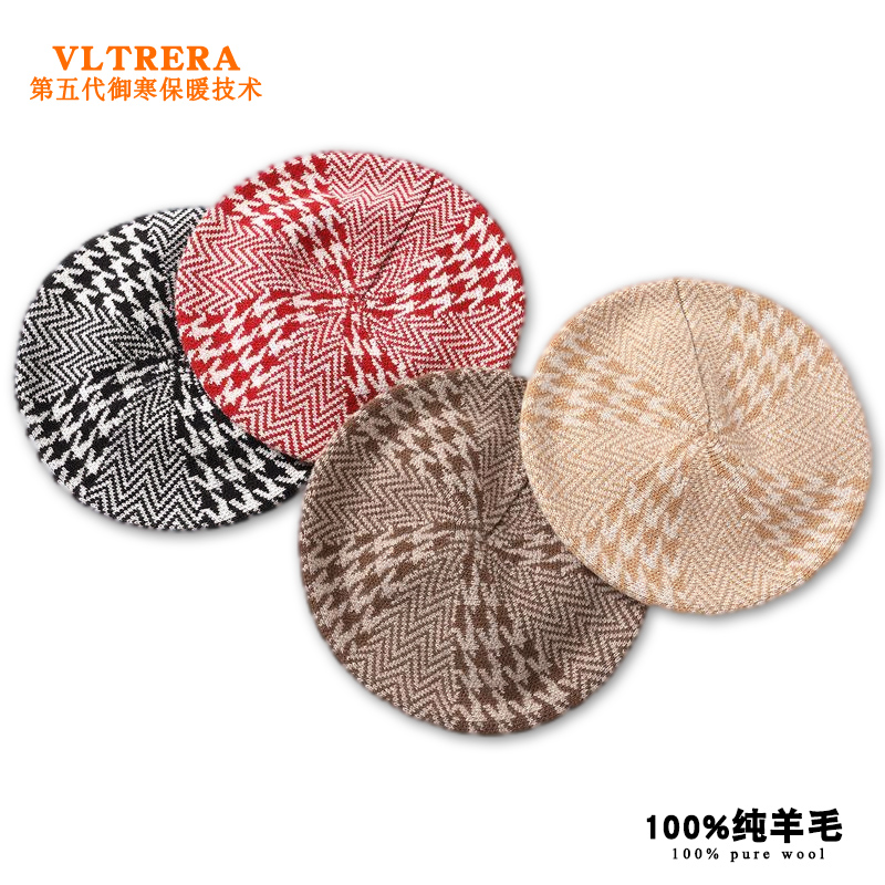Pure wool beret women's casual dome spring warm and cold-proof cashmere knitted thick Japanese wild Korean version tide in