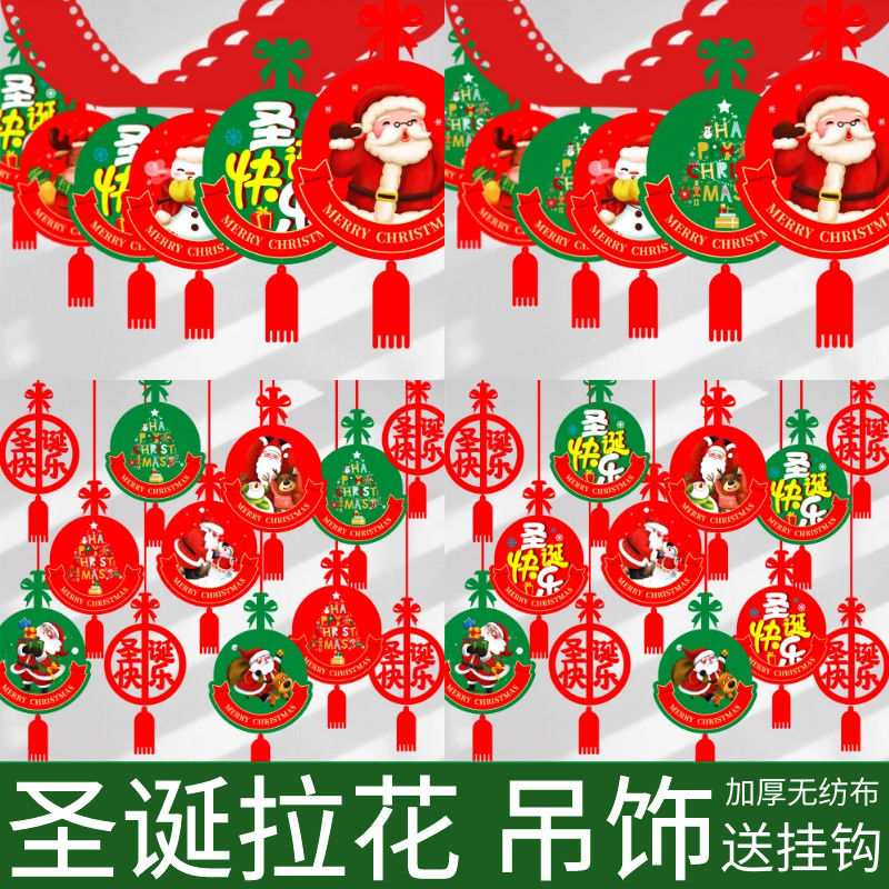 Christmas decoration hanging flag shopping mall Christmas scene layout pull flower storefront hotel dress up ornaments non-woven bra flag