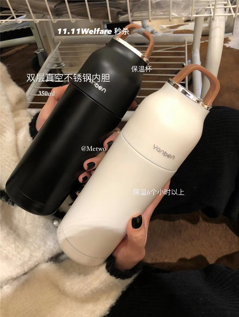 METWO insulation cup female coffee accompanying cup cute high-value portable stainless steel straw student water cup