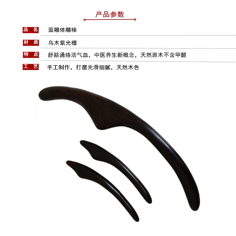 One piece of ebony purple sandalwood body carving stick, a pair of essential oil ebony purple sandalwood surface carvings, a three-piece set of essential oil ebony body carving surface carving sticks, essential oil