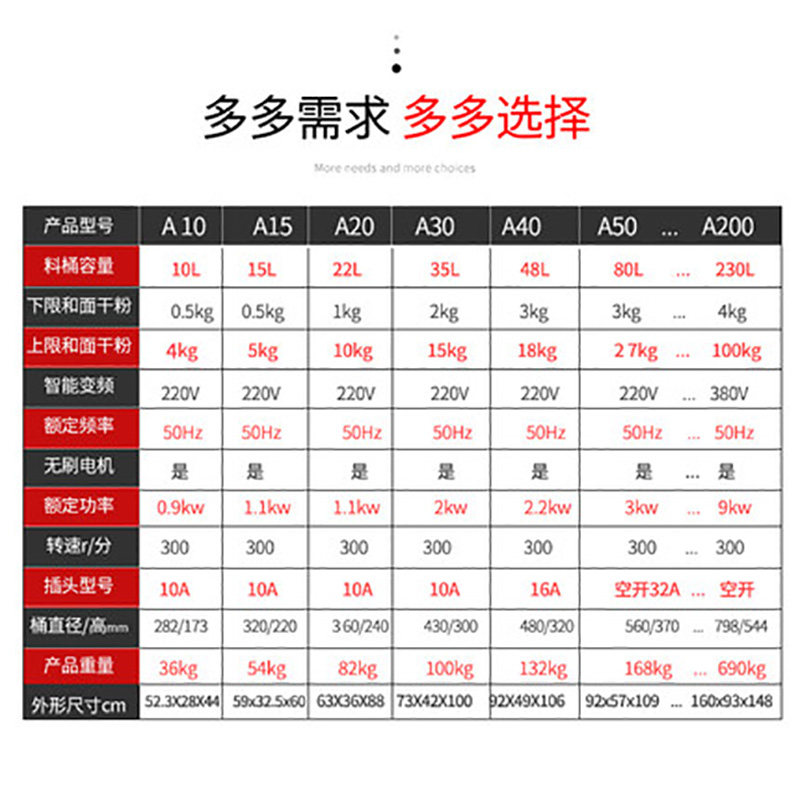 A10 (0 5-4KG flour) A15 (0 5-5KG flour) A20 (1-10KG flour) A30 (1 5-15KG flour) A40 (