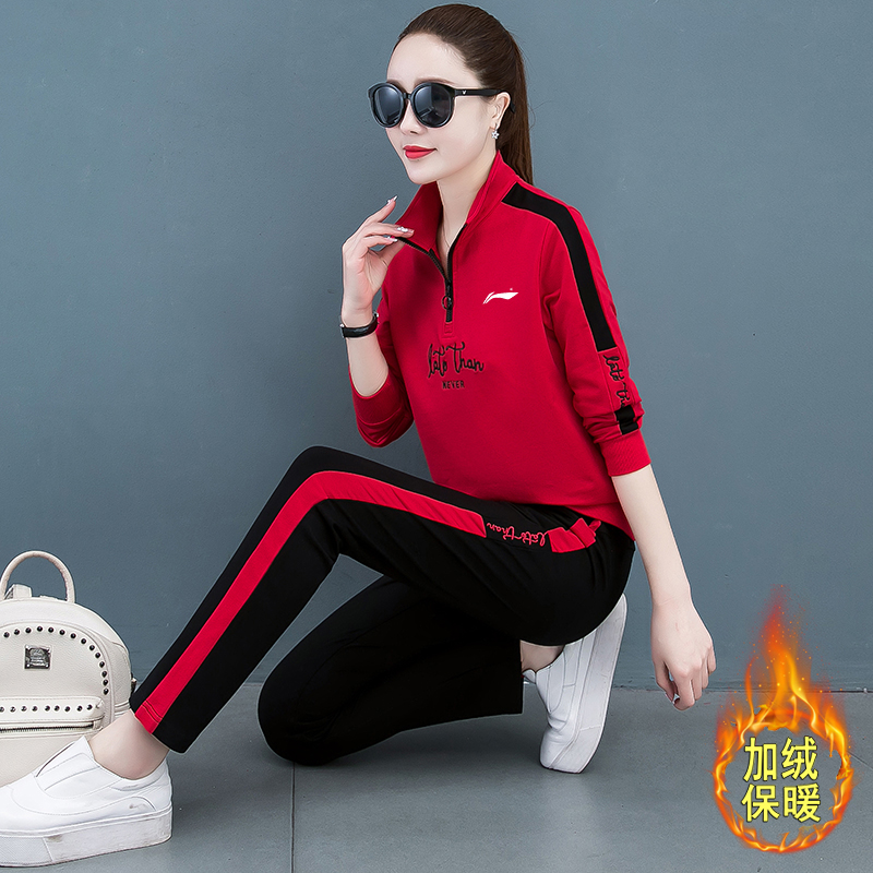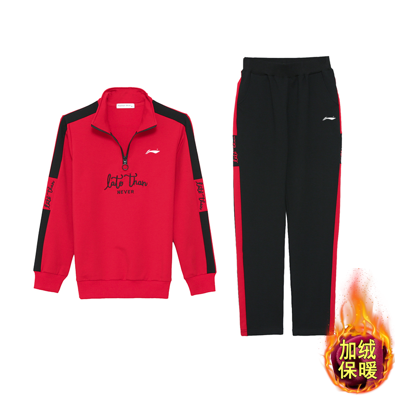 Li Ning Pooh Pooh Sportswear Suit Woman 2021 New Autumn Winter Large Size Clothing Pure Cotton Casual Two-piece Style