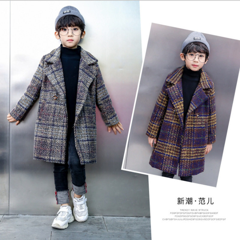 New boy hairy, great coat and autumn winter clothing children's medium long version of blouses thickened Korean version of great boy's jacket tide