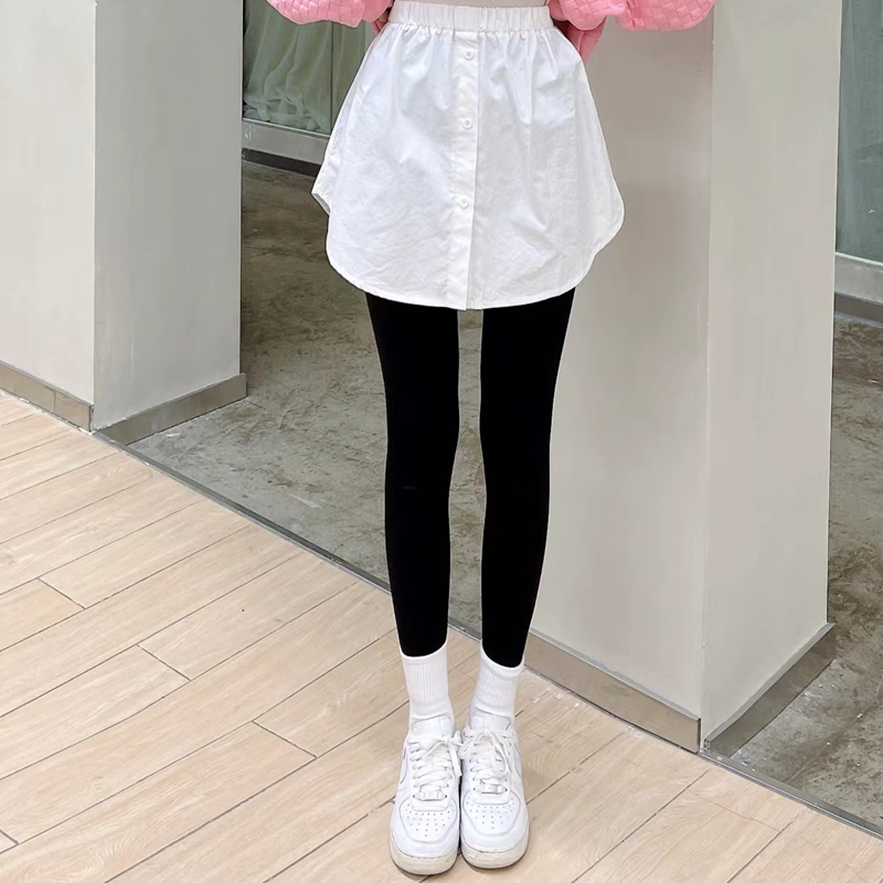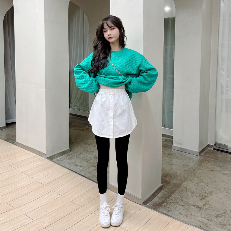 JUSTCC Kaka women's official flagship brushed fart curtain fake hem with an artifact sweater bottoming small white skirt