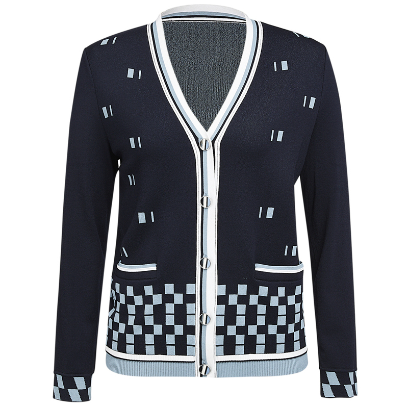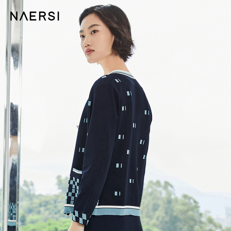 NAERSI Nalth Chessboard Grid Crash Color Knit Cardiovert Woman Spring New Large Size Coat Jacket Blouse
