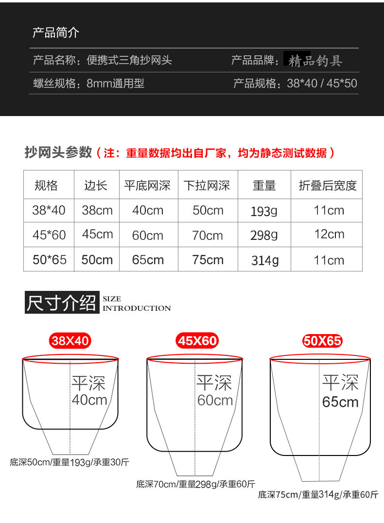 The portable triangular bailing head deepens the folding and overlapping anti-hook large object black pit bulls anti-hanging large fish bailing net pocket