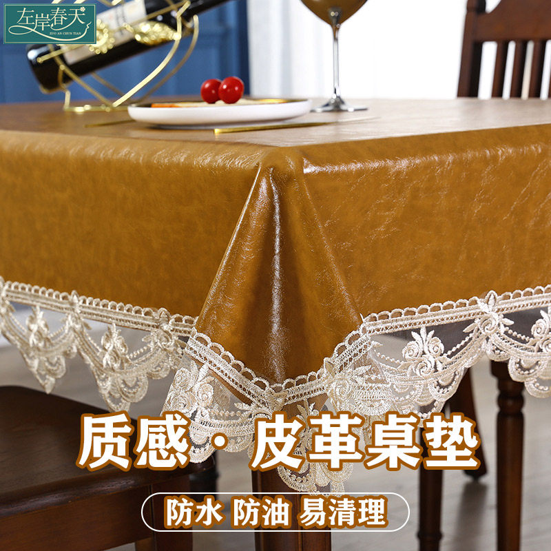 Anti-oil anti-fouling leather yarn embroidered table cloth-curry (back plus lining) thermal insulation high temperature resistant leather yarn embroidered edge table cloth-brown (back plus lining) eco-friendly and tasteless leather yarn embroidered edge table cloth-light blue (back