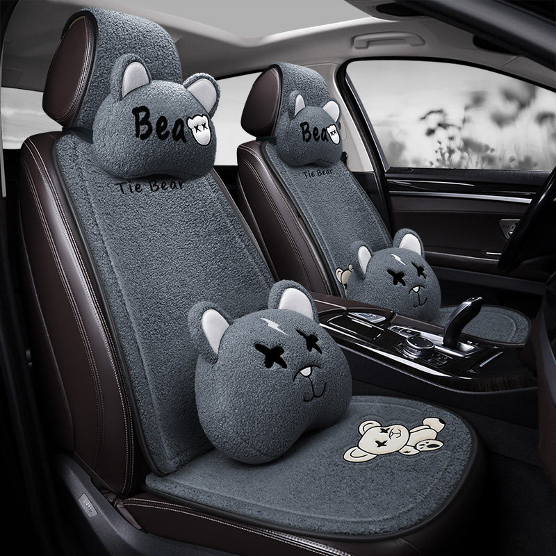 Cartoon car cushion monolithic winter plush thickened warm and cute no backrest three sets winter rear seat cushion