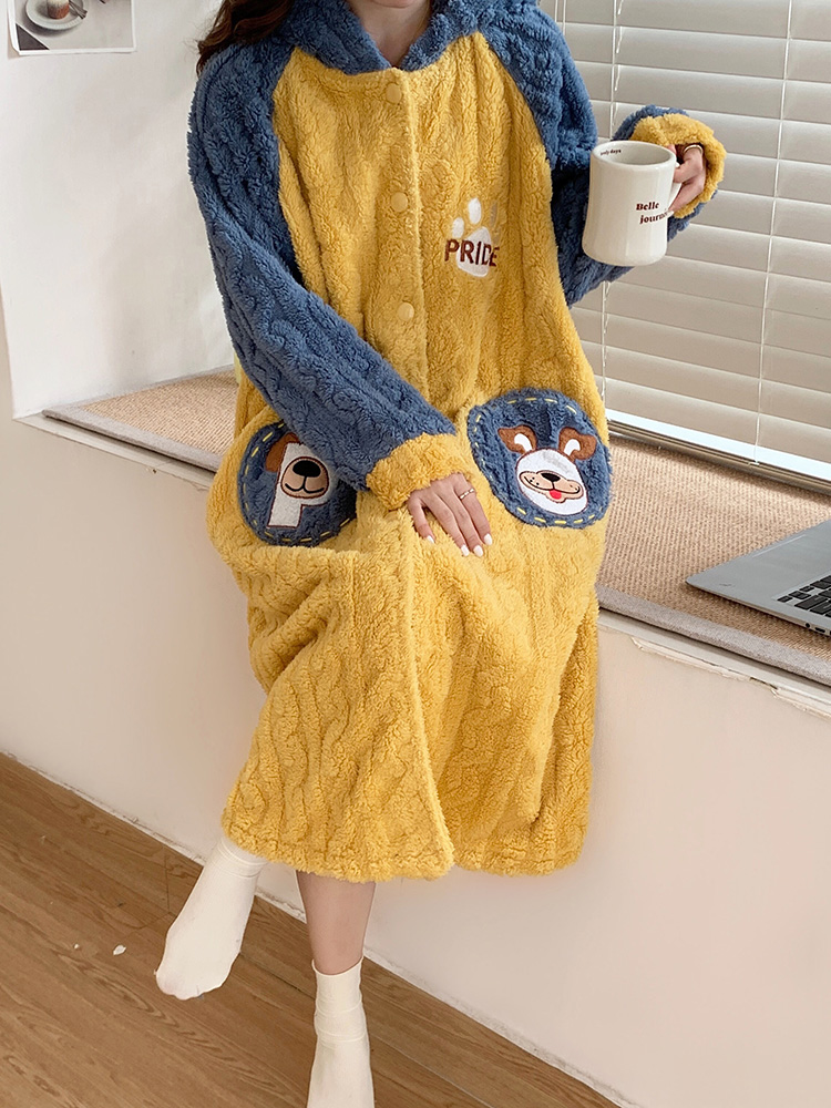 Marghi Fairy Tale ~ Galaxy Teen Autumn Winter Coral Suede Long Version Bathrobe Pyjamas Warm Female Pyjamas Jacket