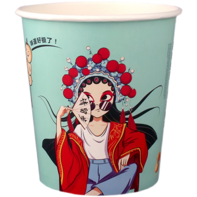 Disposable thickened cup Guochao Kanto cooking paper cup takeaway commercial packaging cup string barrel packaging bag customization