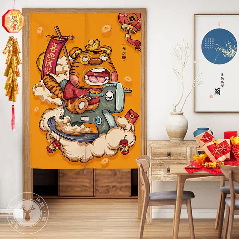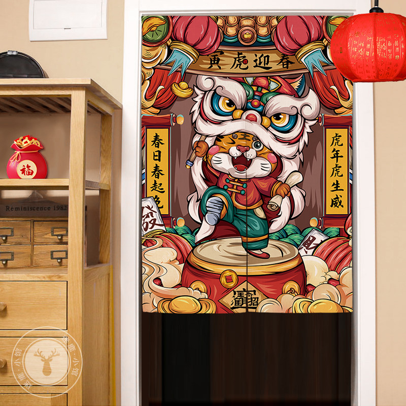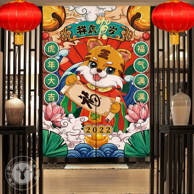 2022 Tiger Year Decoration Door Curtain Country Damp Cloth Art Hanging Curtain Bedroom Kitchen Shelter Curtain Makeup Room Wind water curtain free of punch
