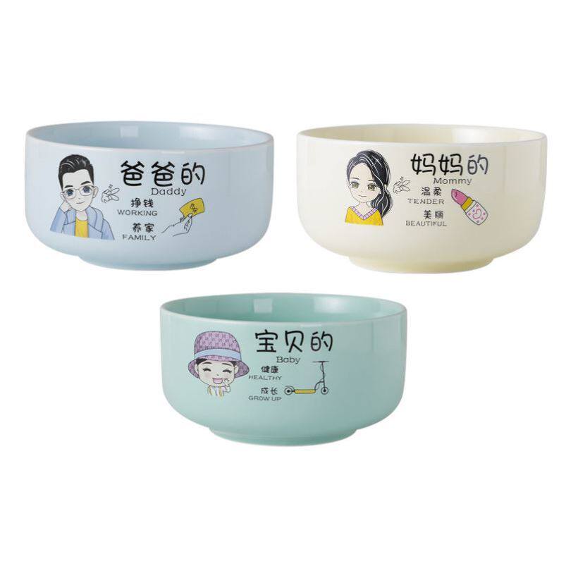 Ceramic rice bowl cute cartoon parent-child bowl net red adult eating bowl family thickened family distinction bowl set