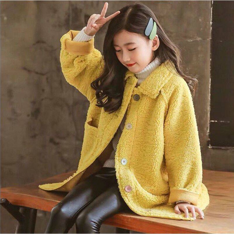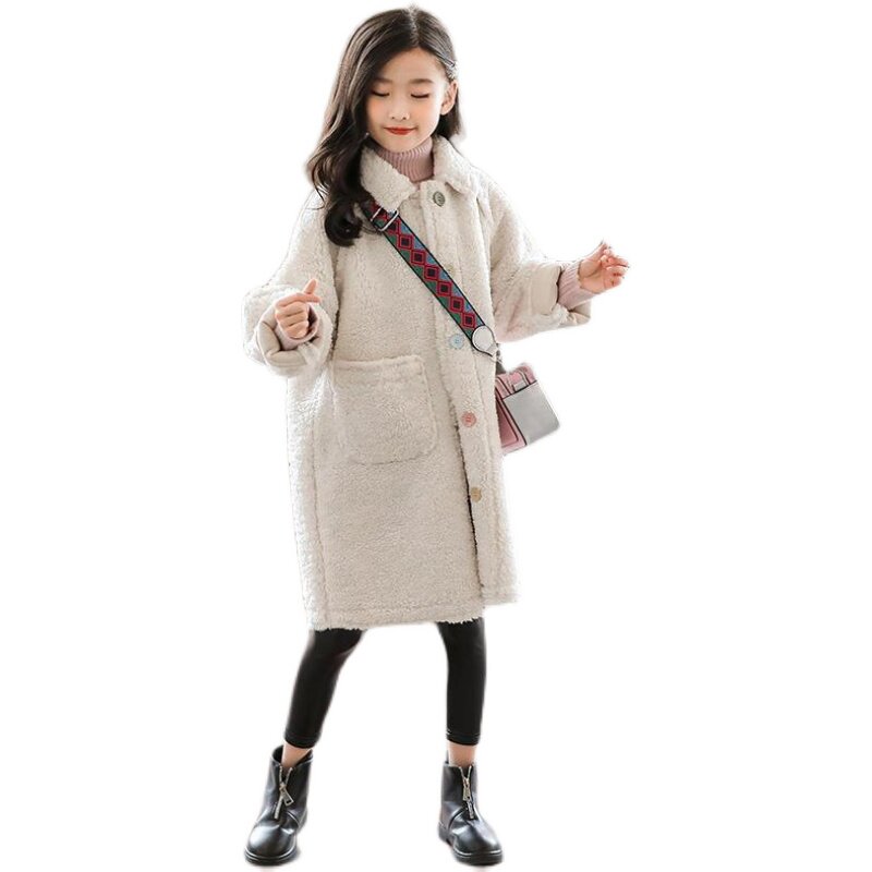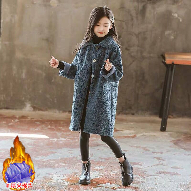 Girls' Plush Coat 2021 New Autumn and Winter Western Style Middle-aged Children's Plus Cotton Thickened Sheep Shearing Mid-Length Coat
