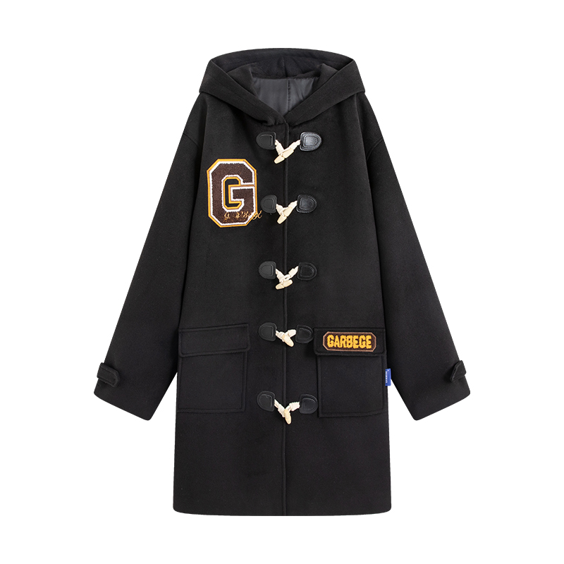 GARBEGE Magic Academy wind black thickened woolen coat 2022 autumn and winter new horn button trench coat